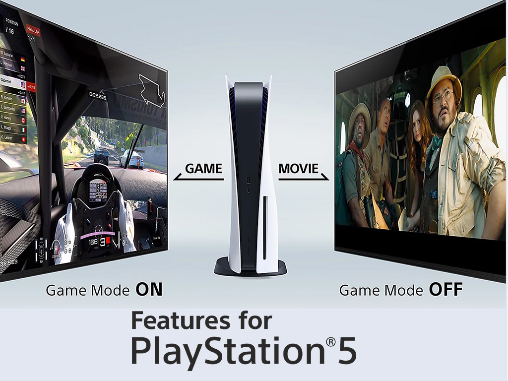With the feature for PS5, BRAVIA automatically switches into Game Mode with PS5™ to minimize lag and maximize responsiveness. It switches back to Standard Mode when watching movies for more expressive scenes.
