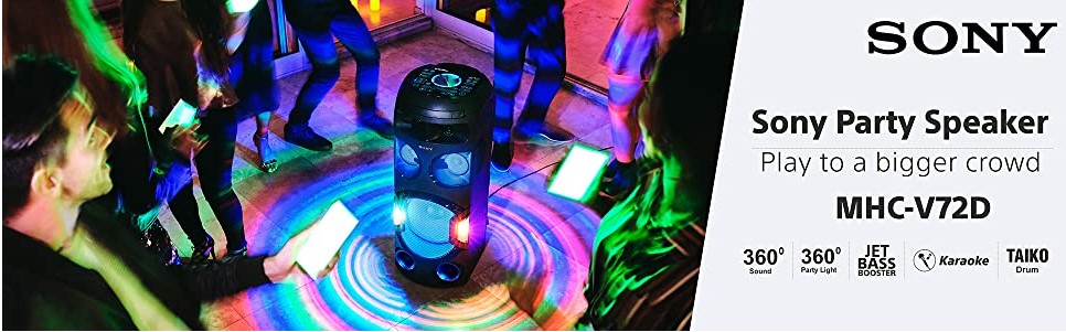 Device Protection Plan AddedSony MHC-V72D Powerful Party Speaker with 360 Degree and Long Distance Bass Sound ( 360 Degree Party Light , Jet Bass Booster, Karaoke and Guitar Input, Gesture Control, Bluetooth Connectivity, DVD Player, Gesture Control)