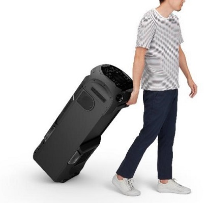 Whenever you want to move the MHC-V72D, just hold the convenient carry handle and tilt it back. A sturdy caster lets you roll all the way to the party. Tilt and roll for portability! Whether you're hanging out with friends at home or taking the party elsewhere just hold the convenient carry handle and tiltit back. A sturdy caster lets you roll all the way to the party.