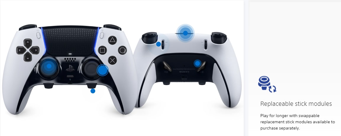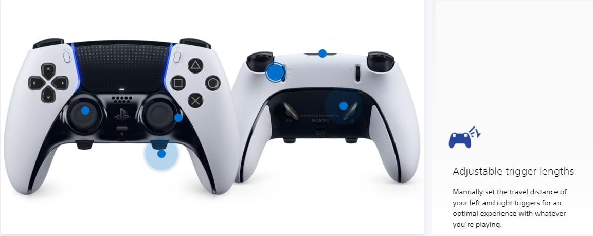 Custom settings make your DualSense Edge wireless controller uniquely yours. Discover some of the controller's key features via the pulsing icons below: