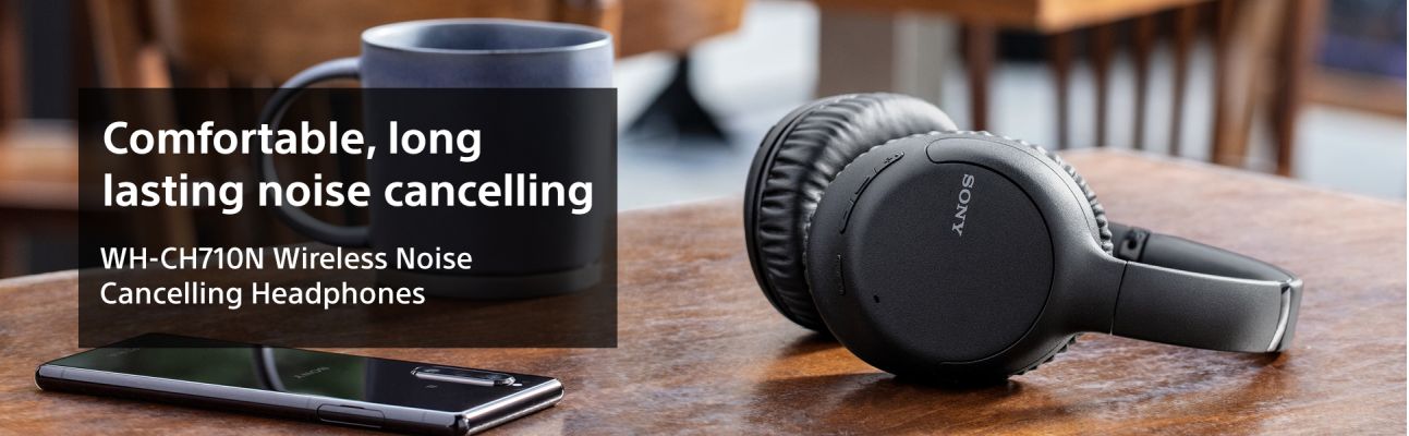 WH-CH710N Wireless Noise Cancelling Headphones. The WH-CH710N, Wireless Noise Cancelling Headphones offer powerful, distraction-free listening wherever you are. With Noise Cancelling via Dual Noise Sensor Technology, as well as Ambient Sound mode, you can take control of what you hear and with 35 hours of wireless playback, you can listen to music all day long. Whether you're taking a long-haul flight or commuting to work, the Automatic Artificial Intelligence Noise Cancelling function (AINC) constantly analyses environmental ambient sound components, and automatically selects the most effective noise cancelling filter for your surroundings. Dual microphones feeding forwards and backwards mean the headphones catch more ambient sounds than ever before. So, whether you're trying to block out city traffic or office chatter, you'll be able to get completely lost in whatever you're listening to. Ambient Sound mode puts you in complete control of your listening experience. Switch it on, and you'll be able to listen to your music, while still hearing the essential everyday sounds that keep you safe, like traffic noise and transport announcements. A built-in Li-ion battery means that you can listen to up to 35 hours of audio on a single charge. Plus, with quick charging, you get 60 minutes of playback from just 10 minutes of charging. The headphones have a sleek, rounded design that looks as good as they sound. The new 30-mm drivers achieve a pure, clear sound even with light and comfortable headphones, ideal for reproducing a range of frequencies, from low beats to high vocals. A simple button press connects you to your smartphone's Voice Assistant to get directions, play music and communicate with contacts.
