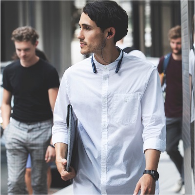 Keep listening in comfort with a behind-the-neck design made from comfortable silicon that's easy to store in your bag.