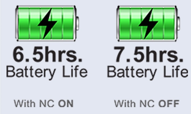 - Battery Life: Up to 6.5 Hours of battery life with NC On, 7.5 Hours with NC off