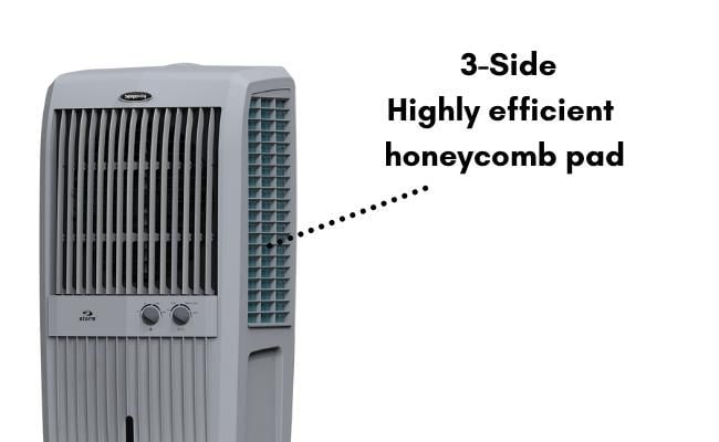 Generates more air current than a regular cooler fan. Credit goes to our patented fan blade technology that ensures everyone in the room feels the cool breeze.