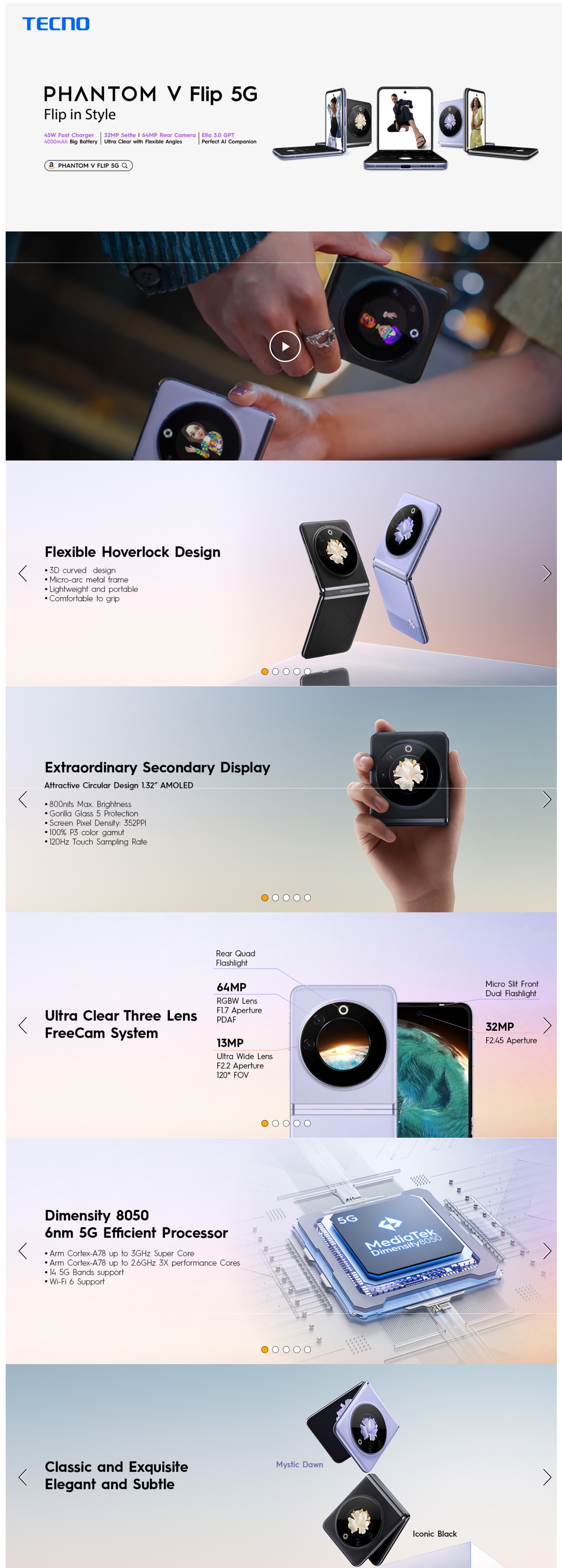 * This Tecno Phantom V Flip mobile phone image is for illustration purpose only. Actual image may vary.