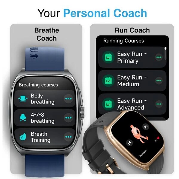 | Key Features | SingleSync BT Calling Piezoelectric functional Crown NitroTM Fast charging Auto Sports Recognition Breathe Coach AuraX UI Weather Camera & Music Control Sound and Vibration settings Screen-On Time DND Mode AI Voice Assistant Find Phone Titan Run Coach Animated watch faces 60 Hz Display Liquid Silicon Strap IP68 |