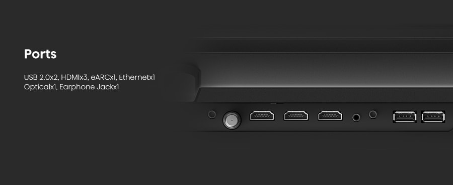- Connectivity: 3 HDMI Ports, 2 USB Ports
