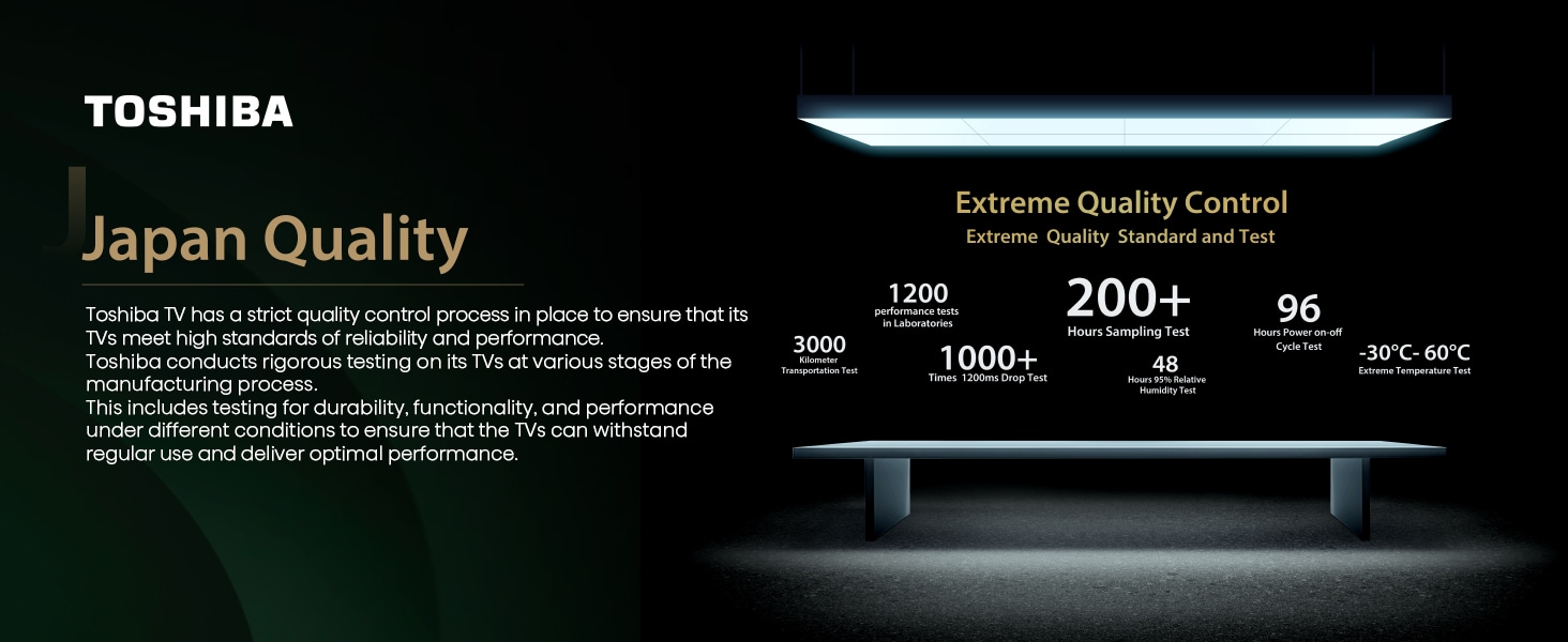 Toshiba TV has a strict quality control process in place to ensure that its TVs meet high standards of reliabllity and performance. Toshiba conducts rigorous testing on its TVs at various stages of the manufacturing process. This includes testing for durabillty, functionality and performance under different conditions to ensure that the TVs can withstand regular use and deliver optimal performance.