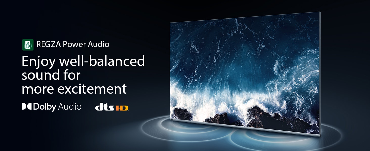 REGZA Power Audio enables you to hear sound as if you are right there in the scene.Sound comes from the dual 12W "clear direct speakers", letting you hear more realism for truly well-balanced sound experience.