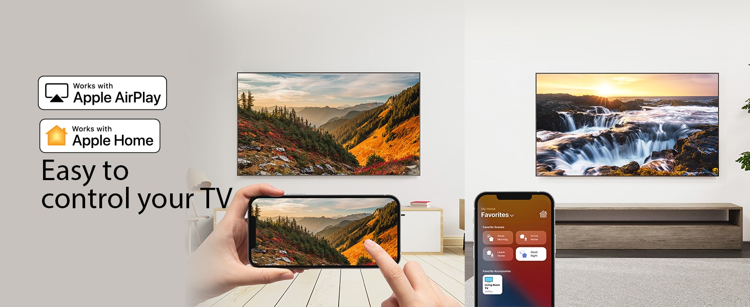 With Apple AirPlay, you can stream movies, music, games and photos to your television right from your iPhone, iPad or Mac. And because your television is compatible with Apple Home, you can control it on your iPhone, iPad, Apple Watch, HomePod mini, or Mac using Apple HomeKit technology.
