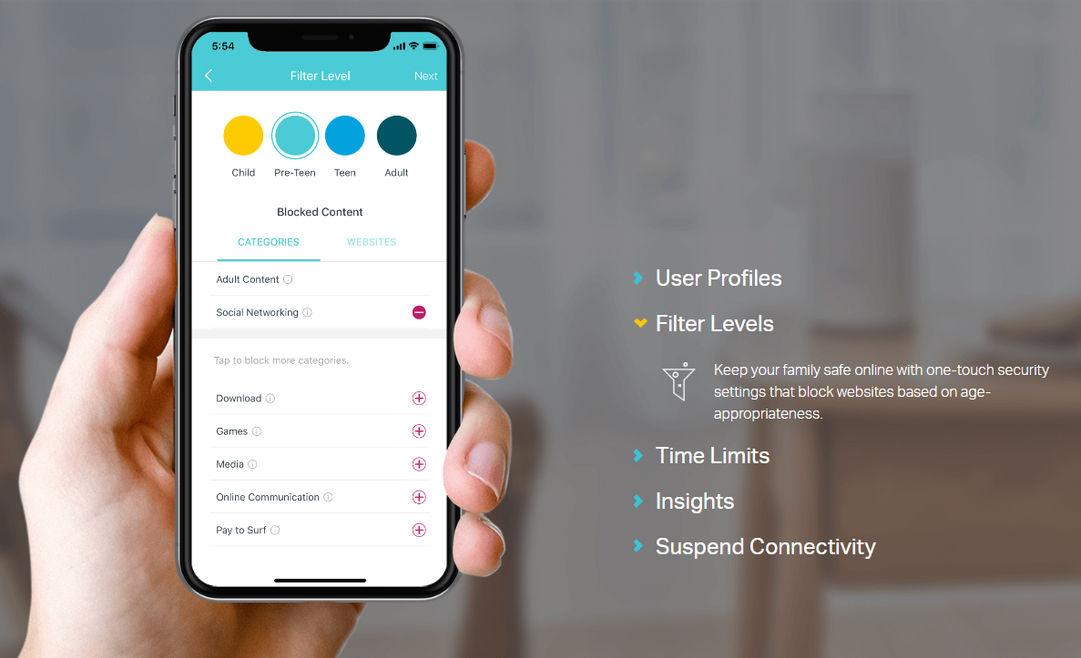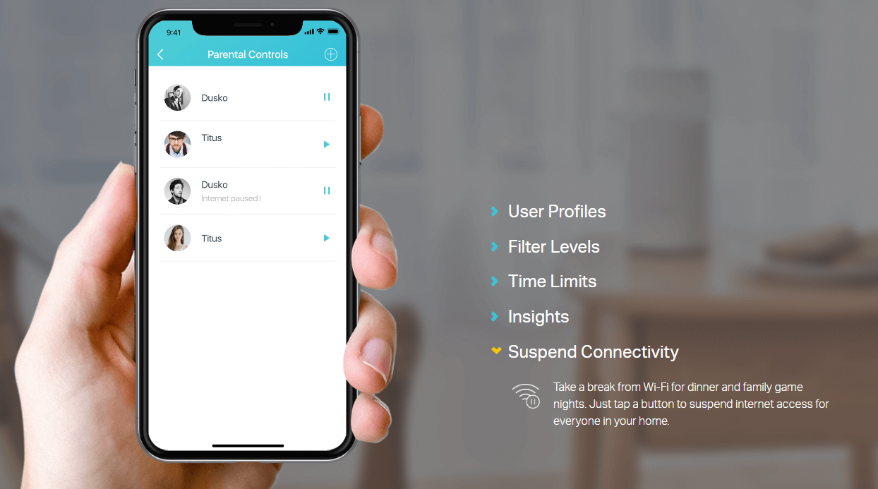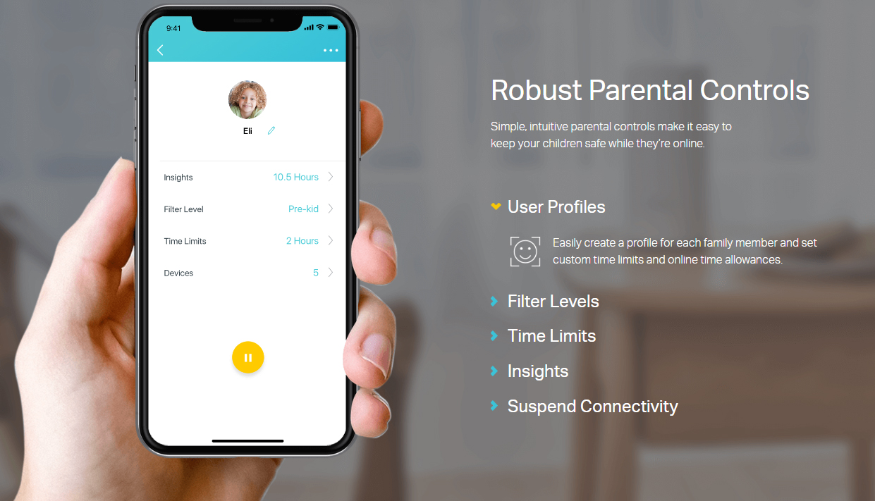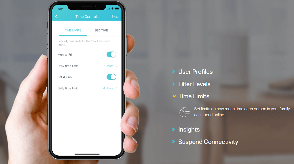 - Parental Controls limits online time and block inappropriate websites