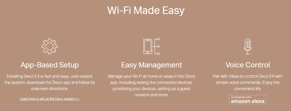 - Deco app Support, Whole-home Wi-Fi coverage