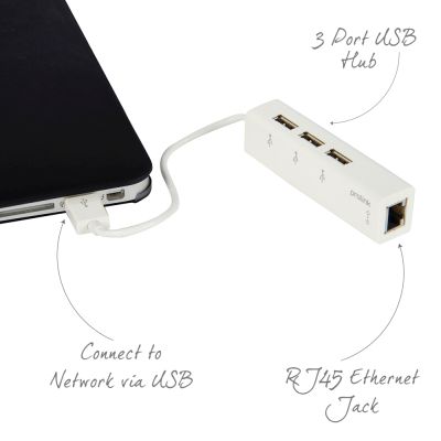 UltraProlink MP300 USB 2.0 Internet Adapter 10/100 Ethernet LAN Network Adapter with 3 port USB Hub- For Laptops & ultrabooks