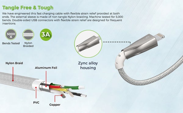 UltraProlink USB to Lightning Zync Alloy Fast and Tough Charging Cable
