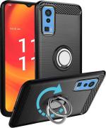 Unistuff Back Case Cover for Lava Blaze Pro with Magnetic Kickstand | Premium Matte Finish | Camera Bump Protection | Rubberized Ring Cover - Night Black, 78072
