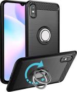 Unistuff Back Case Cover for Mi Redmi 9i with Magnetic Kickstand | Premium Matte Finish | Camera Bump Protection | Rubberized Ring Cover - Night Black, 76054