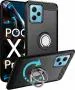 Unistuff Back Case Cover for Poco X5 Pro 5G with Magnetic Kickstand | Premium Matte Finish | Camera Bump Protection | Rubberized Ring Cover - Night Black, 78192