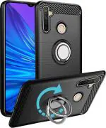 Unistuff Back Case Cover for Realme 5s with Magnetic Kickstand | Premium Matte Finish | Camera Bump Protection | Rubberized Ring Cover - Night Black, 76374