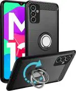Unistuff Back Case Cover for Samsung Galaxy M13 with Magnetic Kickstand | Premium Matte Finish | Camera Bump Protection | Rubberized Ring Cover - Night Black, 76988
