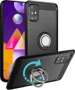 Unistuff Back Case Cover for Samsung Galaxy M31s with Magnetic Kickstand | Premium Matte Finish | Camera Bump Protection | Rubberized Ring Cover - Night Black, 76138