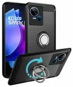 Unistuff Back Case Cover for Tecno Spark 10 5G with Magnetic Kickstand | Premium Matte Finish | Camera Bump Protection | Rubberized Ring Cover - Night Black, 78266