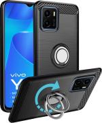Unistuff Back Case Cover for Vivo Y15s with Magnetic Kickstand | Premium Matte Finish | Camera Bump Protection | Rubberized Ring Cover - Night Black, 76962