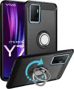 Unistuff Back Case Cover for Vivo Y75 with Magnetic Kickstand | Premium Matte Finish | Camera Bump Protection | Rubberized Ring Cover - Night Black, 78038