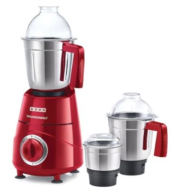 Device Protection Plan AddedUsha Thunderbolt 800 Watts 3 Jars Mixer Grinder, High Speed 100 percent Copper Motor, 3 Multipurpose Jars, TH800MX3, Red