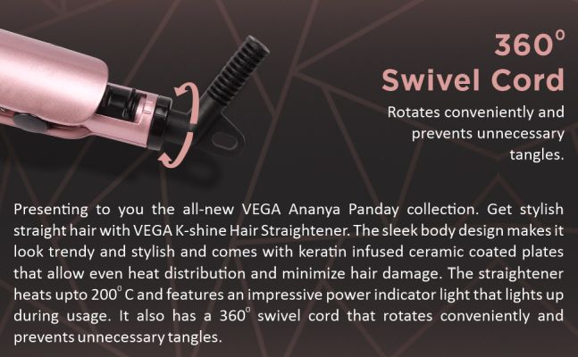 * This VEGA K-Shine Hair Straightener with Keratin Infused Plates image is for illustration purpose only. Actual image may vary.