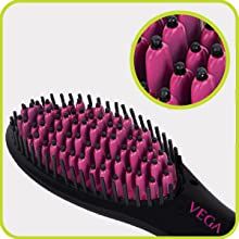 Vega X-Glam Straightening Brush is a perfect combination of hair straightener and hair brush. The straightening brush glides easily and smoothly through your hair, detangles like normal hair brush and also straightens your hair like a hair straightener. The brush has silica gel coated heat protective bristles which protect your scalp from heat.