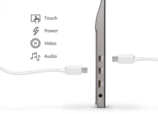The ViewSonic TD1655 is a portable 40.64 cm (16 inch) Full HD touch monitor perfect for overcoming one-screen limitations outside the office. Extend the screen from phones, tablets, or laptops for mobile work, one-on-one presentations, or leisure entertainment. The two universal USB Type C connectors provide a one-cable solution for audiovisual, power, and touch signal transmission. The adjustable wide stand and pivot-able display will support your working angles. With the anti-slip cover, metal case, aluminum stand, and 6H hardness screen, reliability is embodied in the design.