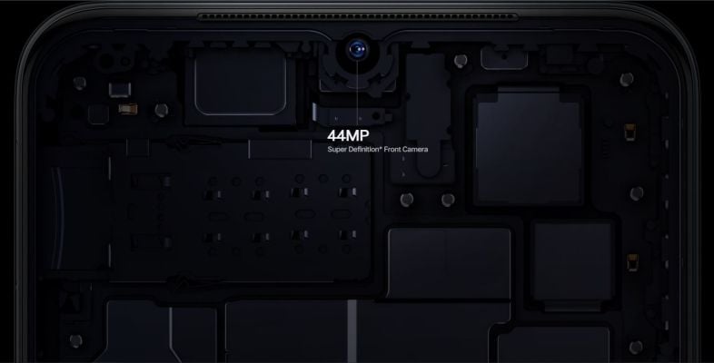 The 44MP main front camera with AF can focus sharply from 15cm, and zoom out to infinity. Whether you are shooting up close or from even greater distances, with the help of a selfie stick, unrivalled focus and clarity await.