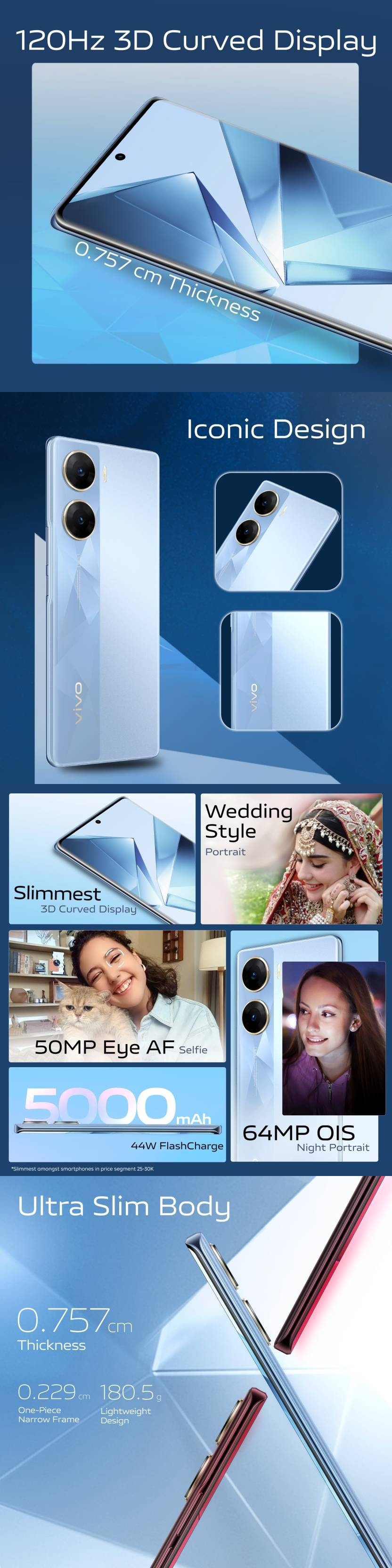 * This Vivo V29e mobile phone image is for illustration purpose only. Actual image may vary.