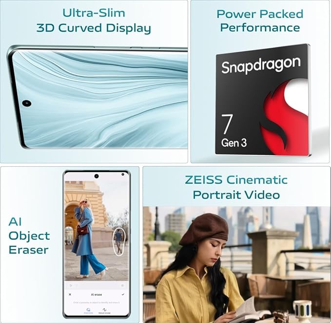 | Key Features | 12 GB RAM, 512 GB Internal Memory 17.22 cm (6.78 inch), 2800 × 1260 Resolution, AMOLED FHD+ Display 50 MP Main Camera, 50 MP Wide-Angle 50 MP Front Camera Qualcomm Snapdragon 7 Gen 3 5500 mAh, 80 Watts Charging |