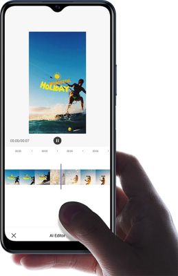 AI Editor enables you to create stylish videos and quickly share them on social media. Its AI algorithm identifies both faces and scenes within your video footage, then splices them into a new reel, within a vlog template.