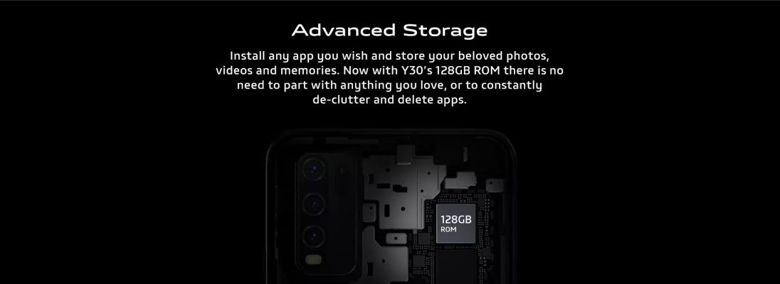 Install any app you wish and store your beloved photos, videos and memories. Now with Y30’s 128GB ROM there is no need to part with anything you love, or to constantly de-clutter and delete apps.