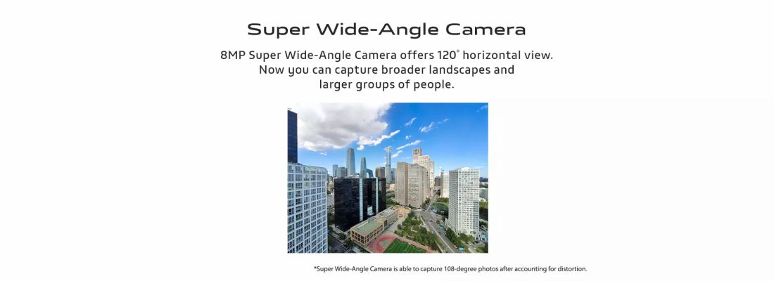 8MP Super Wide-Angle Camera offers 120° horizontal view. Now you can capture broader landscapes and larger groups of people.