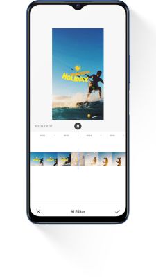 AI Editor enables you to create stylish videos and quickly share them on social media. Its AI algorithm identifies both faces and scenes within your video footage, then splices them into a new reel, within a vlog template.