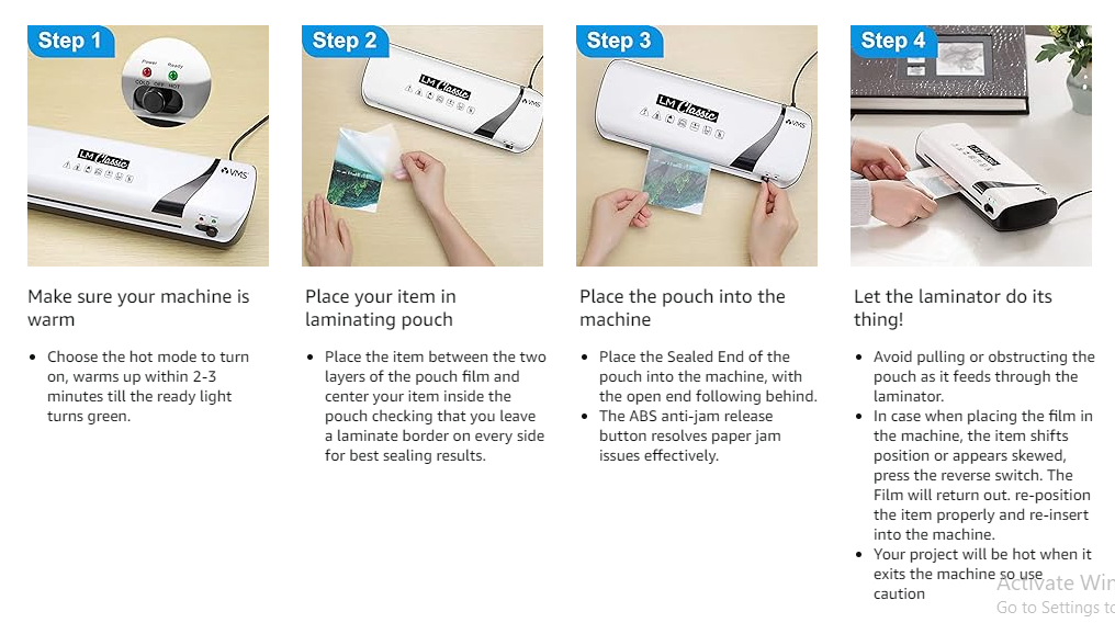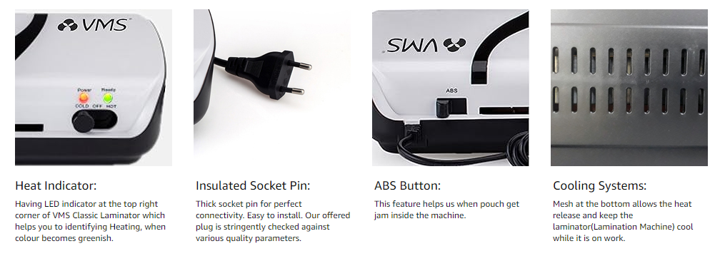 The VMS Laminator /Laminating Machine is the perfect companion for all your daily laminating work, at a low cost.