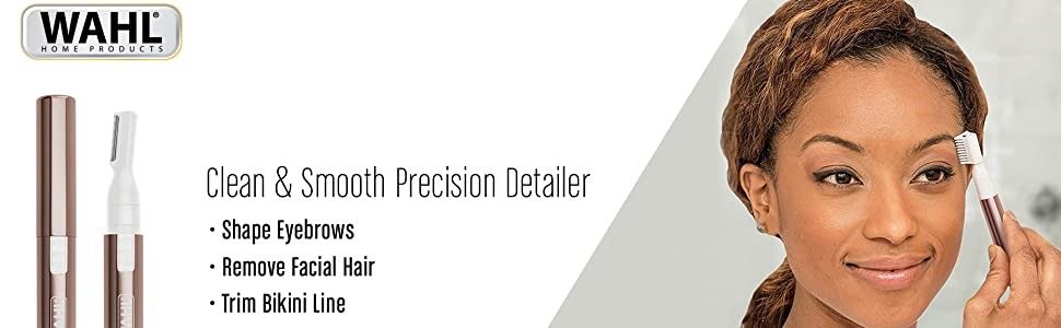 Achieve clean and smooth trimming with Wahl's Clean & Confident Ladies Detail Trimmer. It works great for detail trimming of the eyebrows, face, under arms and bikini area. This trimmer is battery powered for cordless use - 1 AAA battery is included. The provided eyebrow guide attachment helps evenly trim eyebrows and is 2-in-1 to provide long and short cutting lengths. Also, the detail trimmer head is rinsable for easy cleaning. Pick one up for yourself today!