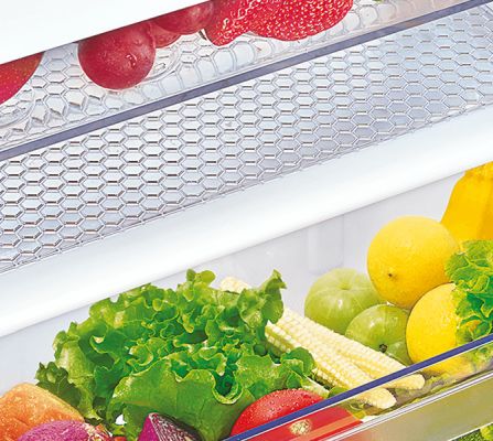 Vegetable Crisper with Honey Comb Moisture Lock-in Technology maintains optimum moisture in your vegetables and keeps them fresher for longer.