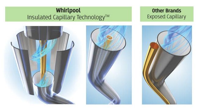 In Insulated Capillary Technology, the capillary which carries the refrigerant from the compressor to the freezer is surrounded by super cold gas leading to benefits such as better compressor efficiency, faster cooling and 12 Hours cooling retention in the refrigerator.