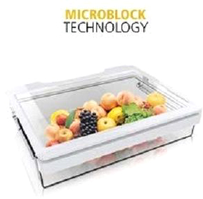 The unique storage space created for fruits comes with a MicroBlock that prevents up to 99.9 percent bacterial growth for product lifetime.