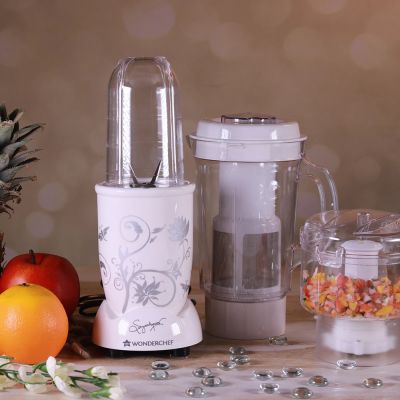 Prepare a different and yummy meal everyday for your family easily once you buy the Wonderchef Nutri-Blend 63152744 Mixer Grinder. It provides you with the ultimate mixing experience. The Wonderchef Nutri-Blend 63152744 Mixer Grinder is equipped with 400 Watt motor for best grinding experience. The body is made of plastic. It comes with 750 ml big mixer jar, 500 ml blending jar, 300 ml dry grinding and chutney jar.