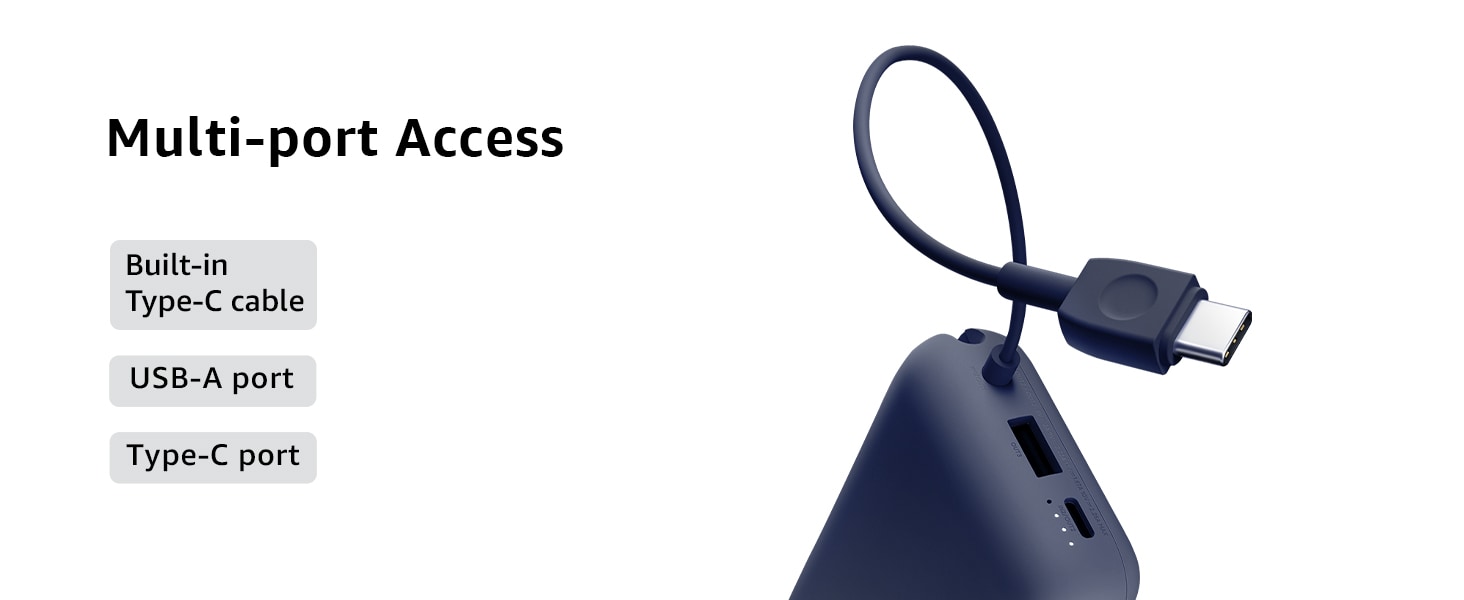 | Key Features | 22.5 W Ultra-Fast ChargingAdvanced 12-layer Safety ProtectionTriple Output - 2 USB A and 1 Type CHigh-density Lithium-ion BatteryPocket Size super light weightLithum Polymer BatteryCompatible With Phones, Tabs and Accessories |