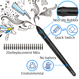 The included P05 passive stylus pen works just like a real pen, but with no battery or charging required! The barrel buttons can be customizabled to suit your drawing habit.