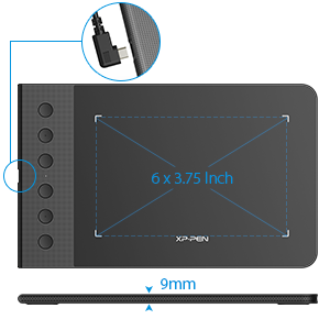 With 6 x 3.75 inches drawing space, XP-PEN Star G640S provides more space than ever for a greater drawing and gameplay experience. At 9mm thick, it is slim for portability and easy on-the-go use.
