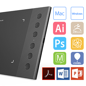 | Features | Designed for Both Right and Left-handed Users Compatible with Windows 10/8/7 Mac OS X 10.10 and above Android 6.0 and above Compatible with many major designer software such as Photoshop SAI Painter Illustrator etc. as well as online teaching software like Zoom Microsoft Teams WebEx etc |