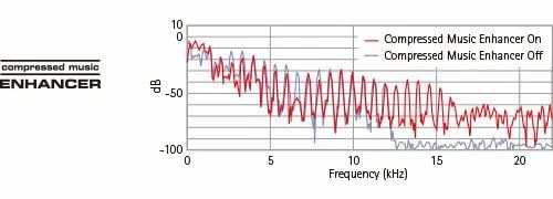 When music is encoded into a digitally compressed format like MP3, the frequency response suffers. Yamaha’s Compressed Music Enhancer employs sophisticated digital signal processing using exclusive algorithms to restore what was lost, so the music always sounds the way it should.
