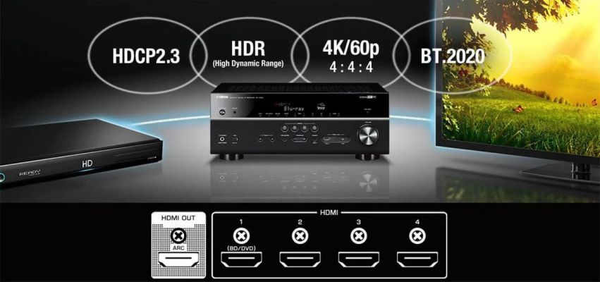 This AV receiver completely supports with latest HDMI standards. Thanks to transmission of 4K video at 60 frames per second pass-through, you can fully enjoy the high definition video quality of 4K without degradation. It also adheres to the HDCP2.3 copyright protection standard for 4K video transmission. It also supports HDR (High Dynamic Range) Video which provides enhanced picture quality by simultaneously enabling greater detail for both the dark and bright parts of an image. Furthermore it supports the wider colour gamut of BT.2020 pass-through. This AV receiver is also compatible with 3D, Audio Return Channel and CEC for easy operation.
